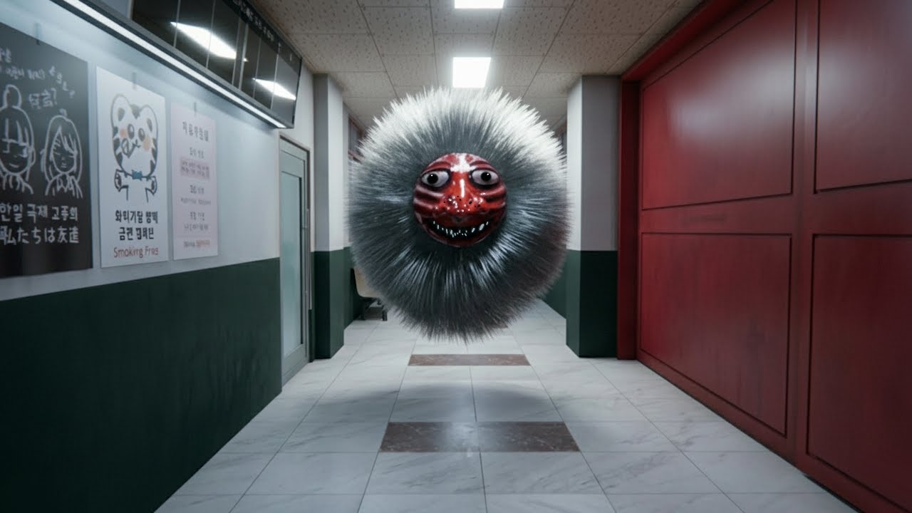 変な化物が追ってくる恐怖の講義室…。